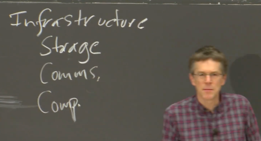 这门课程是有关应用的基础架构的。所以,贯穿整个课程,我会以分离的方式介绍:第三方的应用程序,和这些应用程序所基于的,我们课程中主要介绍的一些基础架构。基础架构的类型主要是存储,通信(网络)和计算。