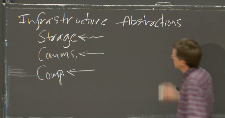 我们会讨论包含所有这三个部分的基础设施,但实际上我们最关注的是存储,因为这是一个定义明确且有用的抽象概念,并且通常比较直观。人们知道如何构建和使用储存系统,知道如何去构建一种多副本,容错的,高性能分布式存储实现。