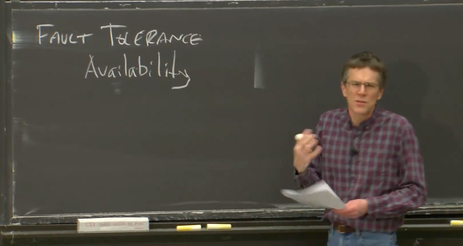 某些系统通过这种方式提供可用性。比如,你构建了一个有两个拷贝的多副本系统,其中一个故障了,另一个还能运行。当然如果两个副本都故障了,你的系统就不再有可用性。所以,可用系统通常是指,在特定的故障范围内,系统仍然能够提供服务,系统仍然是可用的。如果出现了更多的故障,系统将不再可用。
