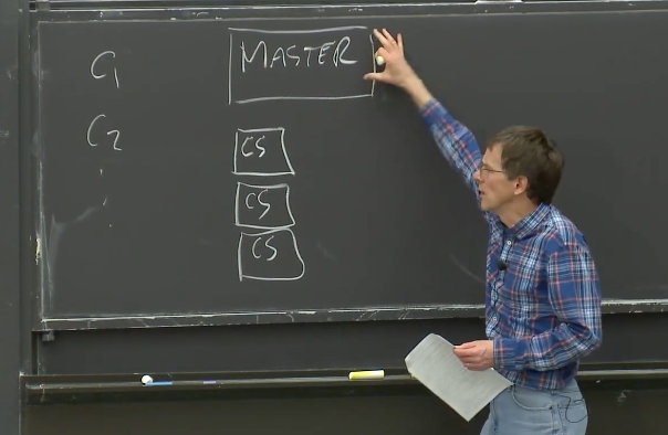 在这里,Master节点用来管理文件和Chunk的信息,而Chunk服务器用来存储实际的数据。这是GFS设计中比较好的一面,它将这两类数据的管理问题几乎完全隔离开了,这样这两个问题可以使用独立设计来解决。Master节点知道每一个文件对应的所有的Chunk的ID,这些Chunk每个是64MB大小,它们共同构成了一个文件。如果我有一个1GB的文件,那么Master节点就知道文件的第一个Chunk存储在哪,第二个Chunk存储在哪,等等。当我想读取这个文件中的任意一个部分时,我需要向Master节点查询对应的Chunk在哪个服务器上,之后我可以直接从Chunk服务器读取对应的Chunk数据。