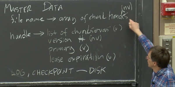 - 版本号要不要写入磁盘取决于GFS是如何工作的,我认为它需要写入磁盘。我们之后在讨论系统是如何工作的时候再详细讨论这个问题。这里先标记成NV。