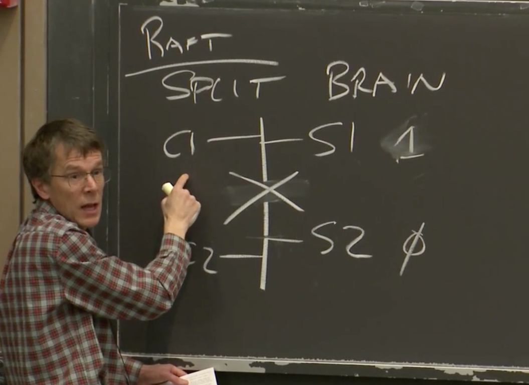 所以,你可以认为我们前面介绍的这些系统,它们将系统容错的关键点,转移到了这个单点上。这个单点,会在系统出现局部故障时,选择数据的主拷贝来继续工作。使用单点的原因是,我们需要避免脑裂(Split-Brain)。当出现故障时,我们之所以要极其小心的决定数据的主拷贝,是因为,如果不这么做的话,我们可能需要面临脑裂的场景。