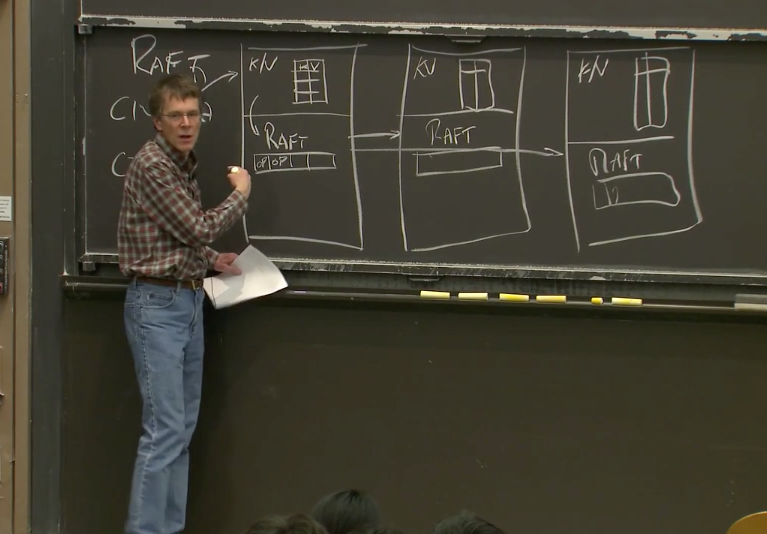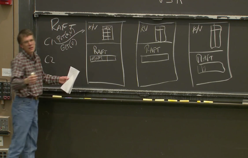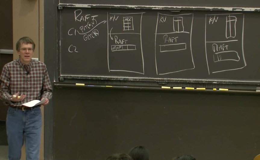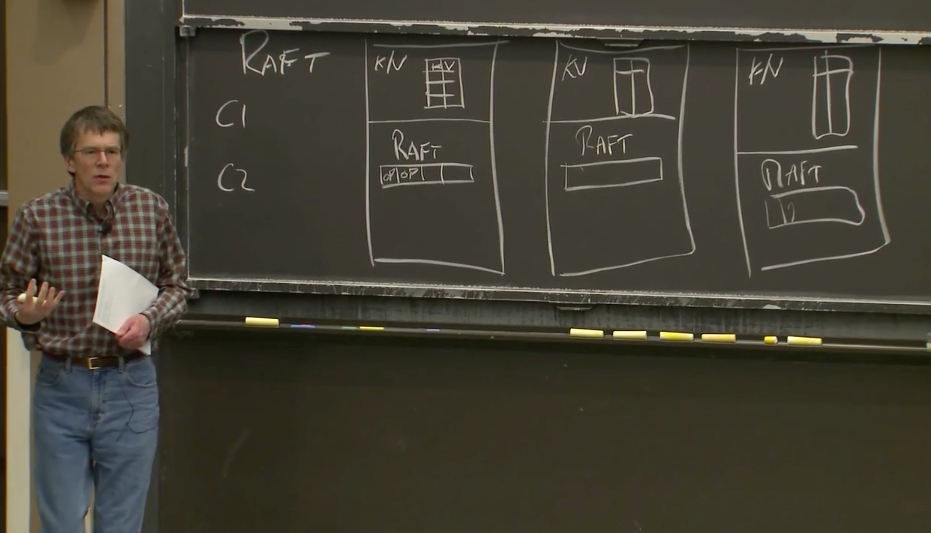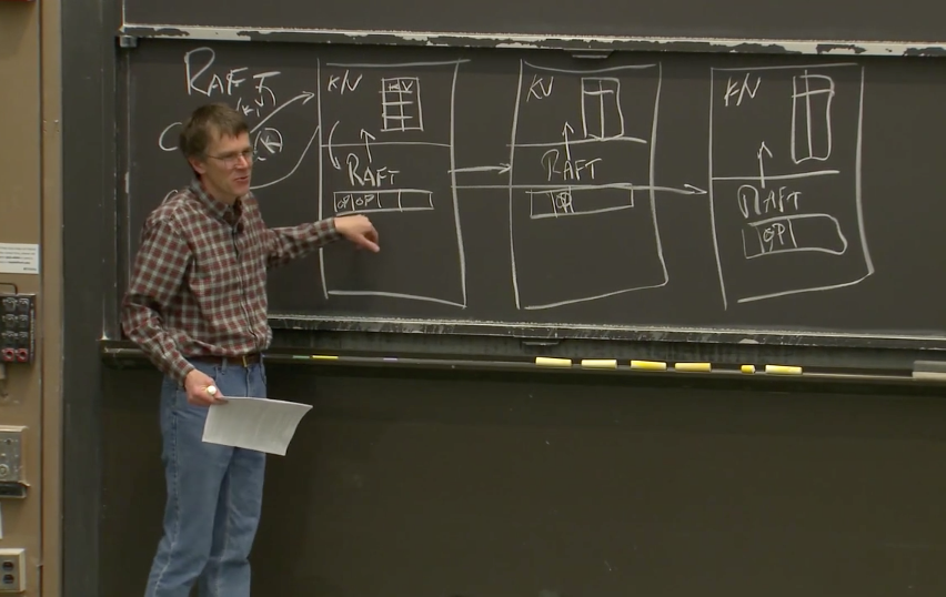 Robert教授:这里只需要拷贝到过半服务器即可。为什么不需要拷贝到所有的节点?因为我们想构建一个容错系统,所以即使某些服务器故障了,我们依然期望服务能够继续工作。所以只要过半服务器有了相应的拷贝,那么请求就可以提交。