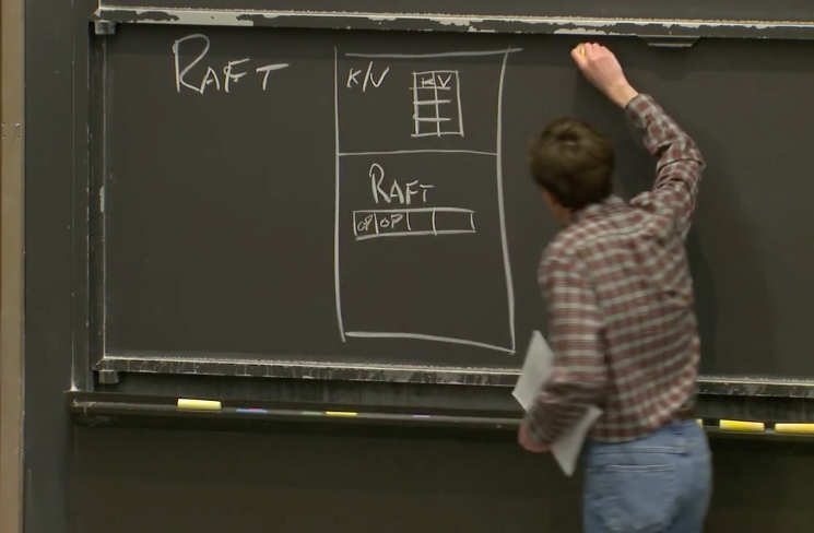 Robert教授:哦对,抱歉。当一个操作最终在Leader节点被提交之后,每个副本节点的Raft层会将相同的操作提交到本地的应用程序层。在本地的应用程序层,会将这个操作更新到自己的状态。所以,理想情况是,所有的副本都将看到相同的操作序列,这些操作序列以相同的顺序出现在Raft到应用程序的upcall中,之后它们以相同的顺序被本地应用程序应用到本地的状态中。假设操作是确定的(比如一个随机数生成操作就不是确定的),所有副本节点的状态,最终将会是完全一样的。我们图中的Key-Value数据库,就是Raft论文中说的状态(也就是Key-Value数据库的多个副本最终会保持一致)。