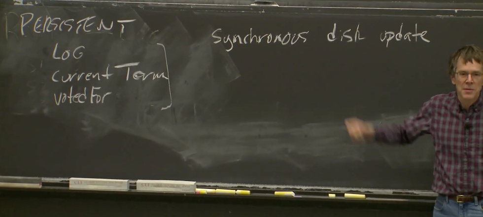 之所以这很重要是因为,向磁盘写数据是一个代价很高的操作。如果是一个机械硬盘,我们通过写文件的方式来持久化存储,向磁盘写入任何数据都需要花费大概10毫秒时间。因为你要么需要等磁盘将你想写入的位置转到磁针下面, 而磁盘大概每10毫秒转一次。要么,就是另一种情况更糟糕,磁盘需要将磁针移到正确的轨道上。所以这里的持久化操作的代价可能会非常非常高。对于一些简单的设计,这些操作可能成为限制性能的因素,因为它们意味着在这些Raft服务器上执行任何操作,都需要10毫秒。而10毫秒相比发送RPC或者其他操作来说都太长了。如果你持久化存储在一个机械硬盘上,那么每个操作至少要10毫秒,这意味着你永远也不可能构建一个每秒能处理超过100个请求的Raft服务。这就是所谓的synchronous disk updates的代价。它存在于很多系统中,例如运行在你的笔记本上的文件系统。