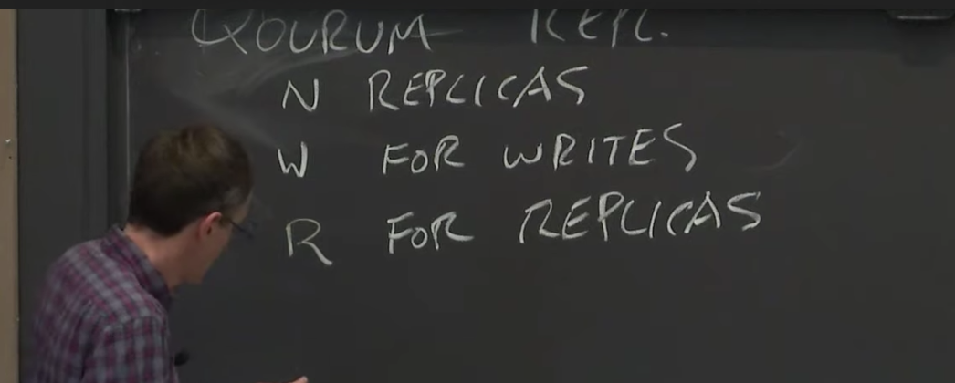 假设有N个副本。为了能够执行写请求,必须要确保写操作被W个副本确认,W小于N。所以你需要将写请求发送到这W个副本。如果要执行读请求,那么至少需要从R个副本得到所读取的信息。这里的W对应的数字称为Write Quorum,R对应的数字称为Read Quorum。这是一个典型的Quorum配置。