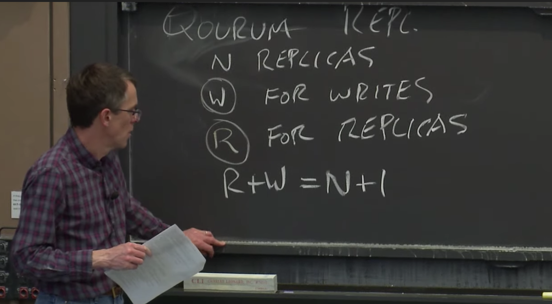 这里还有一个关键的点,客户端读请求可能会得到R个不同的结果,现在的问题是,客户端如何知道从R个服务器得到的R个结果中,哪一个是正确的呢?通过不同结果出现的次数来投票(Vote)在这是不起作用的,因为我们只能确保Read Quorum必须至少与Write Quorum有一个服务器是重合的,这意味着客户端向R个服务器发送读请求,可能只有一个服务器返回了正确的结果。对于一个有6个副本的系统,可能Read Quorum是4,那么你可能得到了4个回复,但是只有一个与之前写请求重合的服务器能将正确的结果返回,所以这里不能使用投票。在Quorum系统中使用的是版本号(Version)。所以,每一次执行写请求,你需要将新的数值与一个增加的版本号绑定。之后,客户端发送读请求,从Read Quorum得到了一些回复,客户端可以直接使用其中的最高版本号的数值。