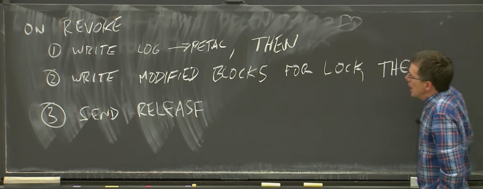 所以,这里的完整的过程是。当工作站从锁服务器收到了一个Revoke消息,要自己释放某个锁,它需要执行好几个步骤。