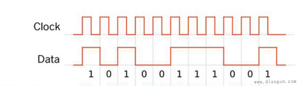 Manchester编码中,发送方在发送bit “0”时,会将电平从低变高;发送bit “1”时,会将电平从高变低。这样就确保了每个bit位都有一次电平的变化,从而使得clock recovery可以实现。虽然它解决了上面提到的NRZ问题,但是它在某种程度上效率比较低(注,因为首先速率需要收发双方协商,其次最高只能按照接收端的内部时钟频率的一半来传输,这样接收端才能识别出每个bit的电平变化)。