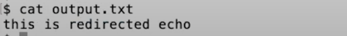 可以看到没有任何的输出。但是实际上redirect程序里面运行了echo,只是echo的输出重定向到了output.txt。如果我们查看output.txt,