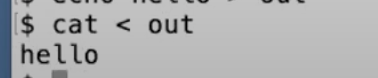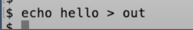 Shell会将echo的输出送到文件out。之后我们可以运行cat指令,并将out文件作为输入,