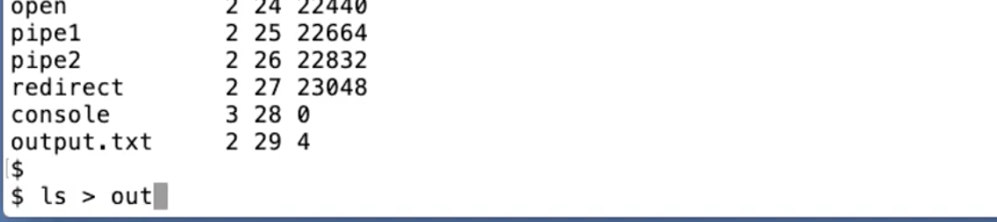 除了运行程序以外,Shell还会做一些其他的事情,比如,它允许你能重定向IO。比如,我输入 ls > out