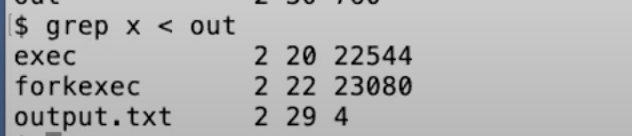 grep x会搜索输入中包含x的行,我可以告诉shell将输入重定向到文件out,这样我们就可以查看out中的x。