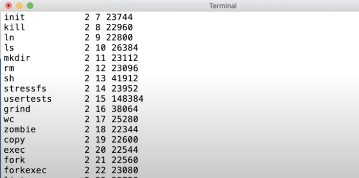 我说了很多XV6的长的很像Unix的Shell,相对图形化用户接口来说,这里的Shell通常也是人们说的命令行接口。如果你还没有用过Shell,Shell是一种对于Unix系统管理来说非常有用的接口,它提供了很多工具来管理文件,编写程序,编写脚本。你之前看过我演示一些Shell的功能,通常来说,当你输入内容时,你是在告诉Shell运行相应的程序。所以当我输入ls时,实际的意义是我要求Shell运行名为ls的程序,文件系统中会有一个文件名为ls,这个文件中包含了一些计算机指令,所以实际上,当我输入ls时,我是在要求Shell运行位于文件ls内的这些计算机指令。