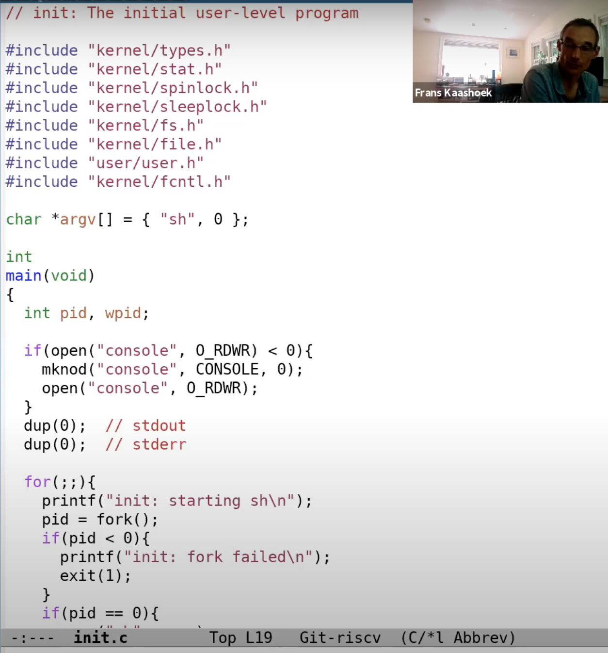 这里简单的介绍了一下XV6是如何从0开始直到第一个Shell程序运行起来。并且我们也看了一下第一个系统调用是在什么时候发生的。我们并没有看系统调用背后的具体机制,这个在后面会介绍。但是目前来说,这些对于你们完成这周的syscall lab是足够了。这些就是你们在实验中会用到的部分。这里有什么问题吗?
