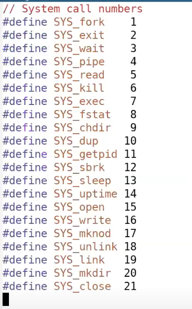 如果我们查看syscall.h,可以看到7对应的是exec系统调用。