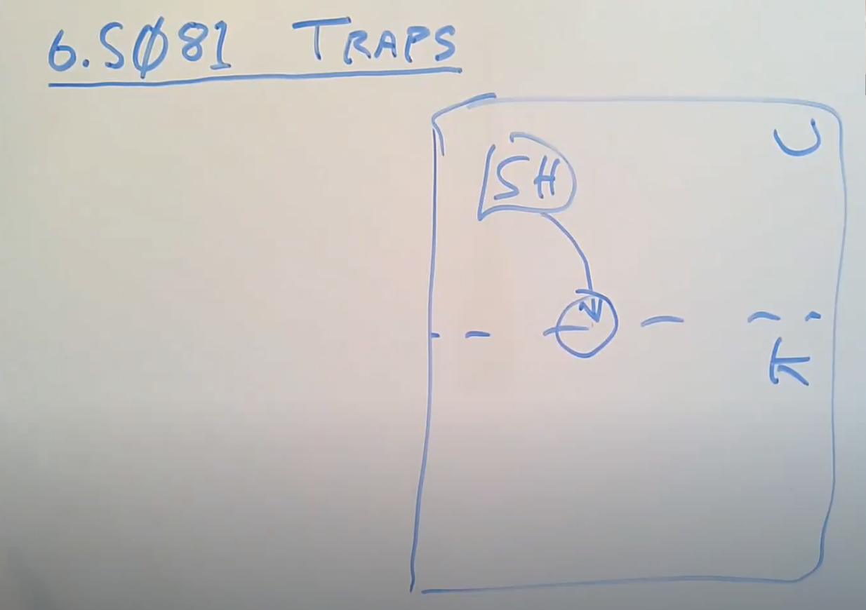 在操作系统的trap机制中,我们仍然想保留隔离性并防御来自用户代码的可能的恶意攻击。同样也很重要的是,另一方面,我们想要让trap机制对用户代码是透明的,也就是说我们想要执行trap,然后在内核中执行代码,同时用户代码并不用察觉到任何有意思的事情。这样也更容易写用户代码。
