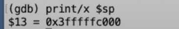 这条指令正在将a0指向的内存地址往后数的第8个字节开始的数据加载到Stack Pointer寄存器。a0的内容现在是trapframe page的地址,从本节第一张图中,trapframe的格式可以看出,第8个字节开始的数据是内核的Stack Pointer(kernel_sp)。trapframe中的kernel_sp是由kernel在进入用户空间之前就设置好的,它的值是这个进程的kernel stack。所以这条指令的作用是初始化Stack Pointer指向这个进程的kernel stack的最顶端。指向完这条指令之后,我们打印一下当前的Stack Pointer寄存器,