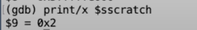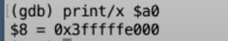 a0现在的值是0x3fffffe000,这是trapframe page的虚拟地址。它之前保存在SSCRATCH寄存器中,但是我们现在交换到了a0中。我们也可以打印SSCRATCH寄存器,