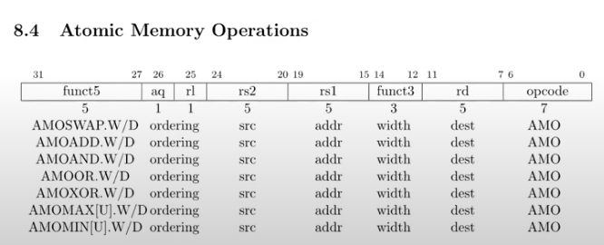amoswap并不是唯一的原子指令,下图是RISC-V的手册,它列出了所有的原子指令。