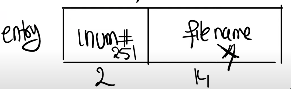 接下来我们讨论一下目录(directory)。文件系统的酷炫特性就是层次化的命名空间(hierarchical namespace),你可以在文件系统中保存对用户友好的文件名。大部分Unix文件系统有趣的点在于,一个目录本质上是一个文件加上一些文件系统能够理解的结构。在XV6中,这里的结构极其简单。每一个目录包含了directory entries,每一条entry都有固定的格式: