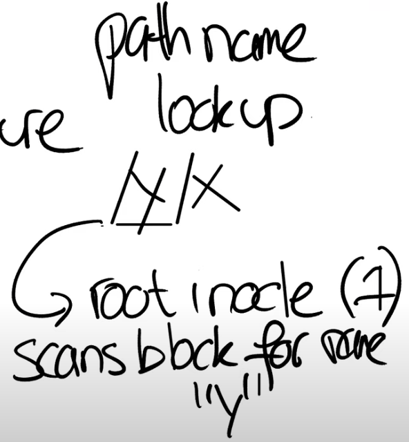 对于实现路径名查找,这里的信息就足够了。假设我们要查找路径名“/y/x”,我们该怎么做呢?