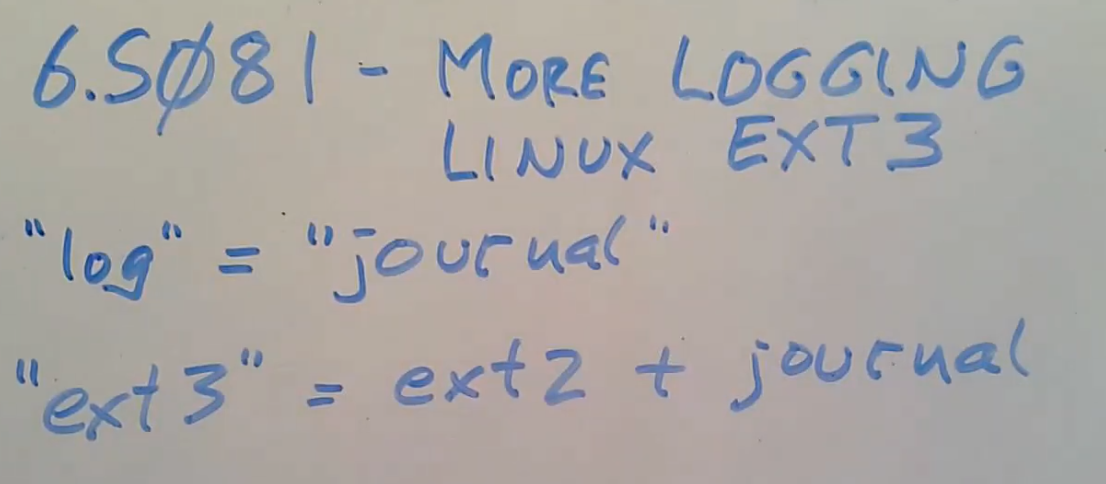 这里有一个术语,当我们谈到log时,与今天阅读的论文所用到的journal是同一件事情,它们是同义词。除此之外,今天的论文是有关向ext2增加journal,并得到ext3文件系统(注,所以可以认为ext3文件系统就是ext2加上了logging系统)。
