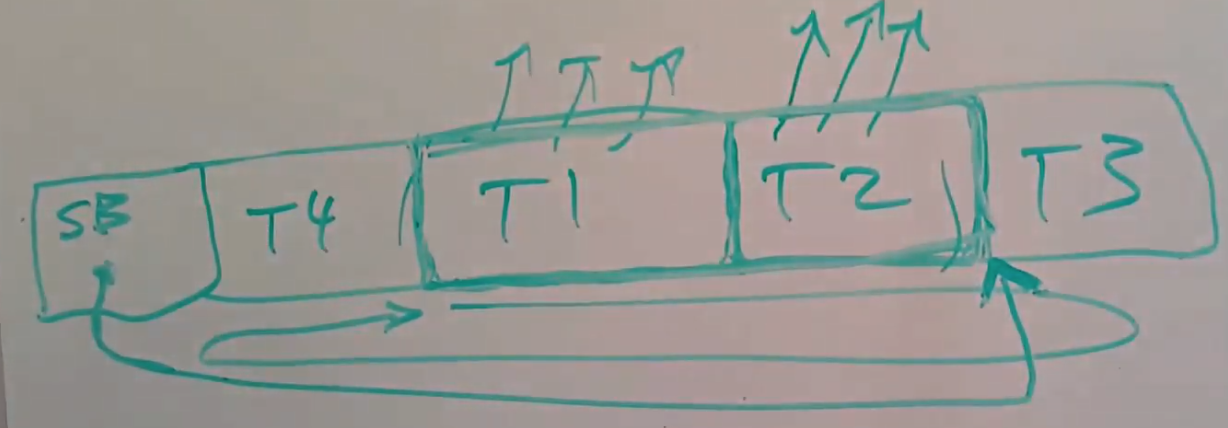 现在crash并重启,恢复软件读取super block就可以知道log的起始位置,之后恢复软件会在log中一直扫描并尝试找到log的结束位置,现在我们需要有一种方式确定log的结束位置。我们知道每个transaction包含了一个descriptor block,里面记录了该transaction中包含了多少个data block,假设descriptor block记录了17个block,那么恢复软件会扫描17个data block,最后是commit block。这样可以一直扫描到T8。