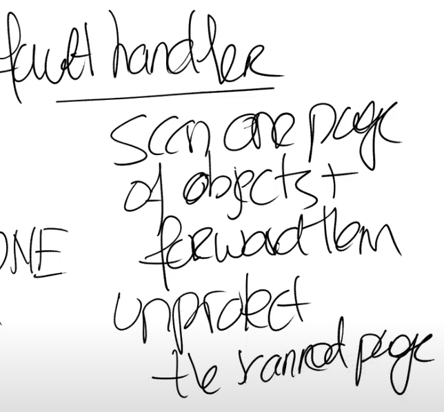 Frans教授:在最开始的时候,to空间是没有任何对象的。当需要forward的时候,我刚刚描述的是拷贝一个对象,但是实际上拷贝的是一个内存Page中的N个对象,这样它们可以填满整个Page。所以现在我们在to空间中,有N个对象位于一个Page中,并且它们都没有被扫描。之后某个时间,Page Fault Handler会被调用,GC会遍历这个内存Page上的N个对象,并检查它们的指针。对于这些指针,GC会将对应的对象拷贝到to空间的unscanned区域中。之后,当应用程序使用了这些未被扫描的对象,它会再次得到Page Fault,进而再扫描这些对象,以此类推。