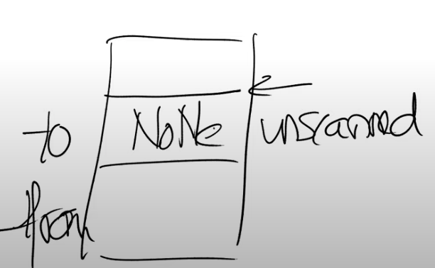 在Page Fault Handler中,GC需要扫描位于内存Page中所有的对象,然后将这些对象所指向的其他对象从from空间forward到to空间。所以,在GC最开始的时候,我们将根节点拷贝过来了;之后在Page Fault Handler中通过扫描,将根节点指向的对象也都拷贝过来了。在我们的例子中根节点指向的只有两个对象,这两个对象会被拷贝到unscanned区域中,而根节点会被标记成scanned。在我们扫描完一个内存Page中的对象时,我们可以通过Unprot(注,详见17.1)恢复对应内存Page的权限。