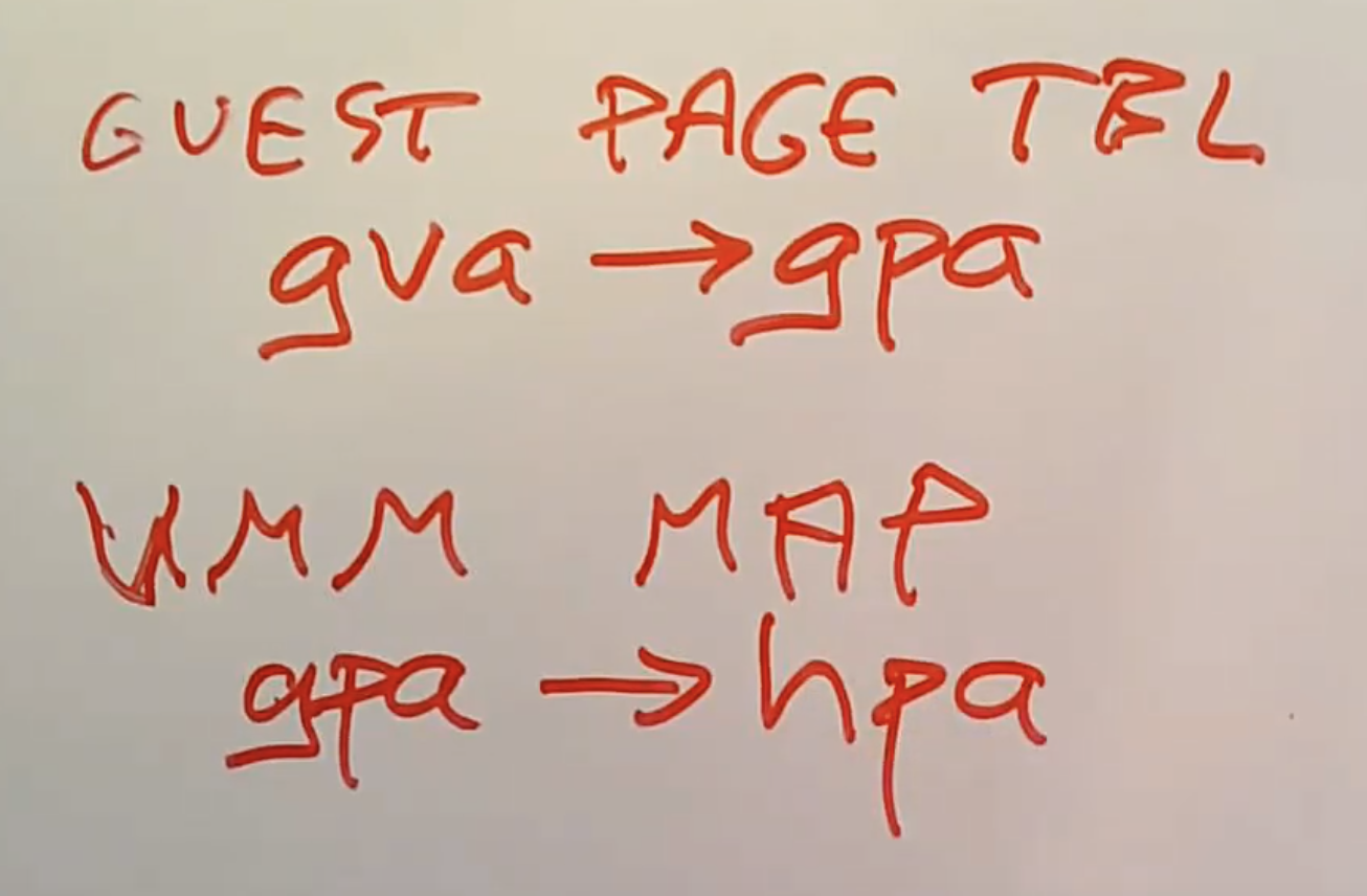 学生提问:所以Guest认为它自己有一个Page Table,也就是gva->gpa,但是这里并没有做任何的翻译工作。VMM通过两个映射关系构建了属于自己的Page Table。