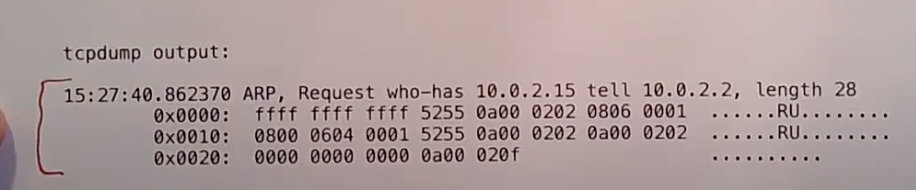 在实际中,你可以使用tcpdump来查看以太网packet。这将会是lab的一部分。下图是tcpdump的一个输出: