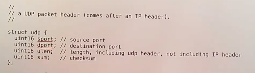 以上就是UDP的介绍。在lab的最后你们会通过实验提供的代码来向谷歌的DNS server发送一个查询,收到回复之后代码会打印输出。你们需要在设备驱动侧完成以太网数据的处理。